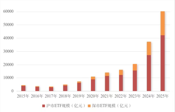 中國滬深兩市ETF規模。圖源:上交所ETF行業發展報告(2026) 2026年是中國“十五五”開局之年,上交所表示,將持續豐富ETF產品高質量供給,不斷優化ETF市場配套機制,引導中長期資金入市,堅持高水平制度型開放導向,提升中國市場影響力競爭力,堅持強監管防風險導向,築牢ETF市場高質量發展根基。(完) 【編輯:石歡歡】