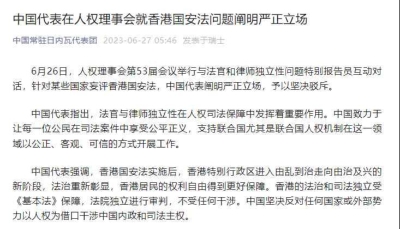 香港中通社2月26日電 25日在瑞士日內瓦舉行的聯合國人權理事會第61屆會議高級別會議上,中國代表對日本等少數國家發表涉華不實言論予以嚴厲駁斥。