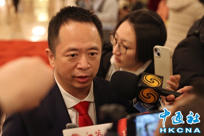 3月4日,全國政協委員、360集團創始人周鴻禕在人民大會堂內接受香港中通社等媒體採訪。香港中通社圖片
