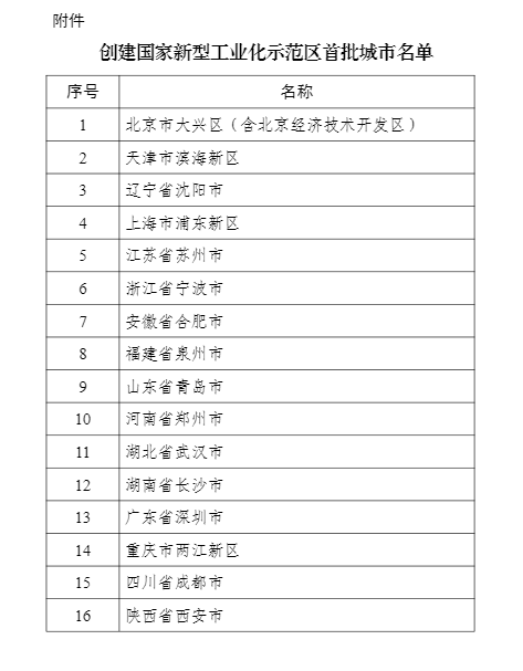中國公布創建國家新型工業化示範區首批16城分享到: