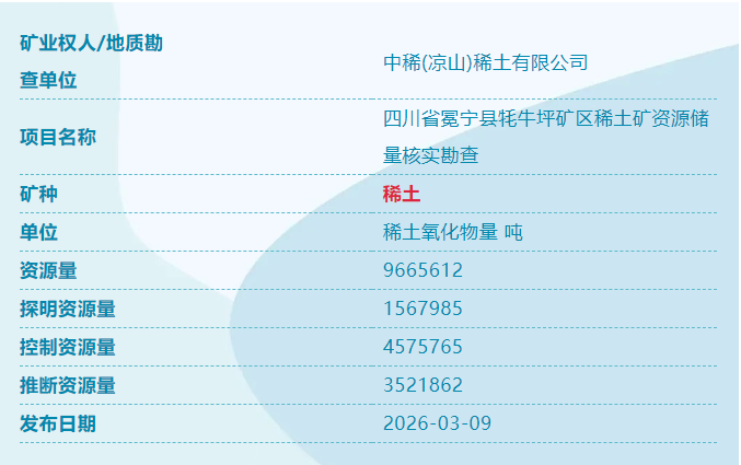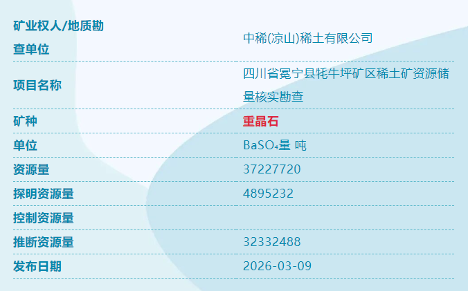 圖源:中國自然資源部 綜合19日消息,中國自然資源部通報,此次發現的礦產均屬國家緊缺或高價值戰略資源。其中,稀土是新能源、電子信息、國防軍工等高端製造領域的“工業維生素”;螢石為氟化工核心原料,廣泛用於半導體與製冷劑生產;重晶石在油氣鑽探中不可或缺;而銻則是阻燃材料和光伏玻璃的關鍵成分。四類礦產的同時現身,凸顯中國西部地區成礦潛力巨大。 據報,這是“十四五”期間找礦突破戰略行動的又一里程碑。自2020年以來,該行動已交出亮眼成績單:全國新發現10個億噸級油田、19個大型氣田,鈾、銅、金、鋰、鉀鹽等關鍵礦產資源量顯著提升。西藏探明超億噸級銅礦,山東萊州西嶺發現世界級金礦,四川雅江則坐擁亞洲最大單體鋰礦,一批具有全球影響力的資源基地相繼浮出水面。 專家指出,當前全球關鍵礦產競爭日趨激烈,資源自主可控已成為國家安全與產業韌性的核心支撐。此次四川、甘肅新礦的發現,不僅強化了國內資源保障能力,也將助力新能源、新材料、高端裝備等戰略性新興產業穩定發展。(完) 【編輯:彭玉婷】