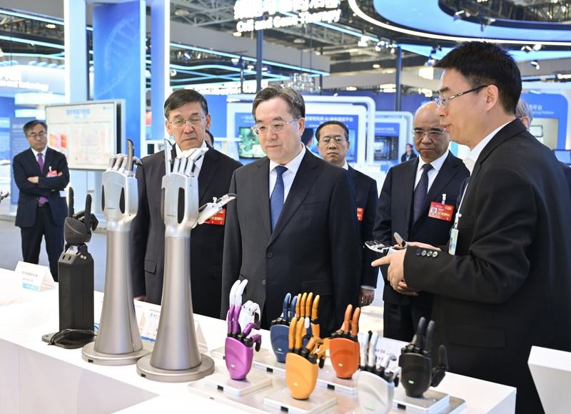 中關村論壇年會25日在中國北京開幕。中國國務院副總理丁薛祥出席開幕式並致辭。這是開幕式後,丁薛祥巡視中關村展示中心常設展,與科技人員進行交流。圖片來源:新華社 丁薛祥指出,過去五年,“十四五”規劃實施期間,中國科技實力顯著躍升,已成為全球創新版圖中的重要一極。面向未來,國家將聚焦京津冀、長三角、粵港澳大灣區三大高質量發展動力源,推動國際科技創新中心從單城突破邁向區域一體化發展。去年,中央經濟工作會議明確部署,將北京、上海兩大科創中心分別擴圍至京津冀和長三角,強化資源統籌與優勢互補,打造具備全球影響力的科學中心、人才高地與創新策源地。 開幕式上,丁薛祥代表中國政府提出共建“全球科技共同體”的三點倡議:一是構建更加開放包容的創新網絡,深化各類主體協作;二是拓展廣泛多元的科技合作,加強基礎研究與新興技術應用;三是推動更加平等向善的科技治理,妥善應對倫理、社會與規則挑戰。 隨後,丁薛祥參觀了中關村展示中心常設展,與一線科研人員深入交流。北京市委書記尹力在活動中表示,將落實關於京津冀協同發展和雄安新區建設的重要指示,加速建設世界級科技創新策源地,統籌教育、科技、人才一體化發展,壯大新質生產力,營造國際一流創新生態。 本屆論壇吸引約1000名中外嘉賓參與,包括政府官員、企業領袖、科學家及國際組織代表。開幕式後舉行的全體會議上,多位知名專家學者圍繞AI、量子計算、生物製造等前沿領域發表主題演講,彰顯科技賦能產業轉型與美好生活的時代主題。(完) 【編輯:彭玉婷】