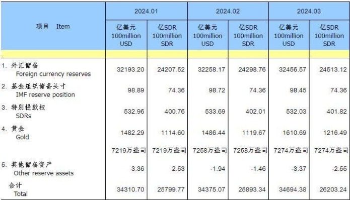 官方儲備資產。圖源:中國國家外匯管理局 中國國家外匯管理局介紹,2026年3月,受全球宏觀環境、主要經濟體貨幣政策及預期等因素影響,美元指數上漲,全球主要金融資產價格下跌。匯率折算和資產價格變化等因素綜合作用,當月外匯儲備規模下降。 據證券時報報道,儘管3月末中國外匯儲備規模環比下降,但仍處於十年來規模水平高位,并已連續8個月穩定在3.3萬億美元之上。 當天更新的官方儲備資產數據還顯示,截至2026年3月末,中國官方黃金儲備為7438萬盎司,較上月末增加16萬盎司。這是自2025年3月以來,中國央行首次單月增持規模超10萬盎司。目前,央行已連續17個月增持黃金。(完) 【編輯:彭玉婷】