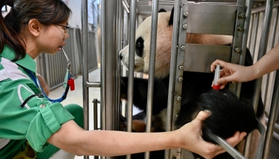 香港新聞網4月9日電 近日,中國陝西西安秦嶺四寶科學公園的大熊貓“七仔”成了國際珍稀動物保護日最搶眼的明星。“七仔”因毛色不同於普通大熊貓而備受關注,目前生活在秦嶺人工繁育種群中,是珍稀野生動物保護的代表性個體之一。