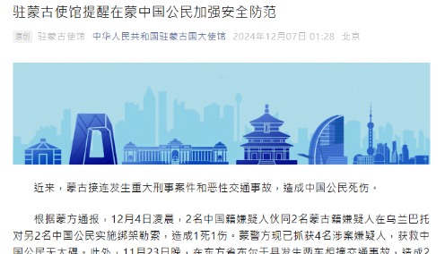 香港中通社4月16日電 中國駐布基納法索大使館公眾號16日發文,鄭重提醒在布中資機構和中國公民進一步加強安全防範。