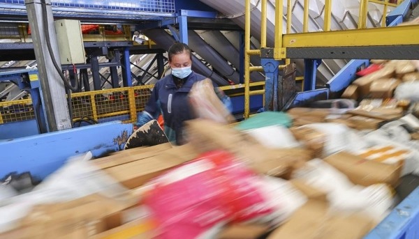 資料圖:在中國郵政速遞物流股份有限公司某轉運中心,工作人員在分揀包裹。圖片來源:新華社 1月到3月,中國郵政行業寄遞業務量累計完成519.0億件,同比增長4.5%。其中,快遞業務量累計完成477.3億件,同比增長5.8%。 從業務類型看,1月到3月,同城快遞業務量累計完成33.5億件,同比下降7.3%;異地快遞業務量累計完成433.4億件,同比增長7.0%;國際/港澳台快遞業務量累計完成10.4億件,同比增長1.7%。同城、異地、國際/港澳台快遞業務量分別佔全部快遞業務量的7.0%、90.8%和2.2%。(完) 【編輯:彭玉婷】