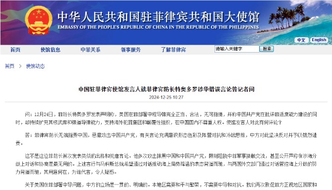 中方斥菲防長涉華言論:信口雌黃 顛倒黑白分享到: