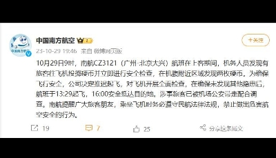 自稱“南航空姐”大鬧航班致延誤 南航官方闢謠“查無此人”分享到:
