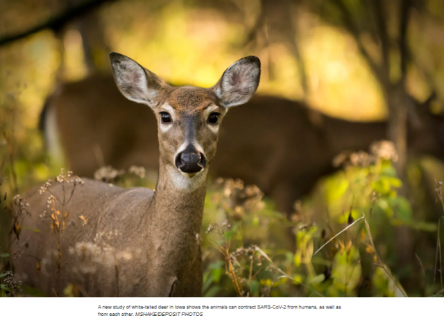 研究發現美國大量白尾鹿感染新冠,或進化出更強毒株據《紐約時報》2日報道,對愛荷華州數百隻感染過新冠病毒的白尾鹿的一項新研究發現,這些動物可能是從人類身上感染到這種病毒,然後彼此之間迅速傳染。