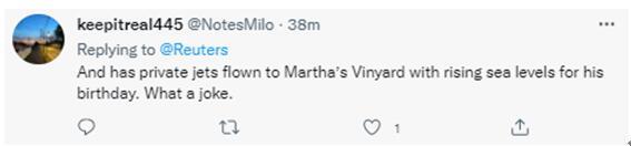 “隨著海平面不斷上升,他坐著私人飛機去瑪莎葡萄園島慶祝自己的生日。多麽可笑。”
