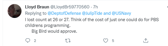 網友數飛機貼文截圖 有網友評論說:“我在數到26或27架時就數不清了。想想看,只要其中一架(艦載機)的成本,就足夠(制作)PBS兒童節目了。‘大鳥’會同意的。”