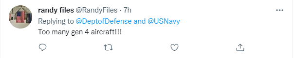 也有網友認為,美國航母甲板上的飛機“過於老舊”:“(裏面)太多第四代戰鬥機!!!”