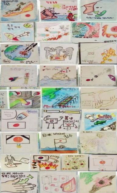 一些韓國小學生的“反日”畫作近日在網上流傳並引發爭議。 據韓國《中央日報》16日消息,有韓國網絡社區14日以“自豪的K-小學生們的作品世界”為題,上傳了數十張小學生的畫。 公開的照片顯示,這些畫上寫有“我要殺光所有日本鬼子”以及貶低日本人的文字,還出現向日本發射導彈、多人踩踏日本國旗、朝日本國旗小便等畫面。