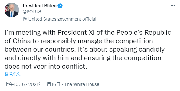 推文截圖 根據白宮網站發佈的新聞稿,拜登在視頻會晤中多次強調此次對話“坦率而真誠”。拜登重申中美關係的重要性,將之稱為“世界上最重要的雙邊關係”,認為實質性具體對話和管控戰略風險有助於維護兩國關係。 觀察者網注意到,在視頻會晤結束後的第一時間,拜登政府官員就便透過《紐約時報》、BBC、《衛報》歐美各大主流媒體就此事做出統一回應,肯定此次會晤的積極意義。 “實際上,會議是關於兩位領導人討論如何負責任地管理中美之間的競爭。”一名匿名的美國高級官員表示,會議旨在讓雙方放心,誤解不會導致意外衝突。 這名官員稱,兩國元首在許多問題上進行了“健康的辯論”(healthy debate),並補充說這次會議是為了確保中美間許多分歧維持“某種穩定的狀態”。該官員重申,談話是“互相尊重和直接的,而且是開放的”。
