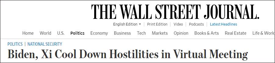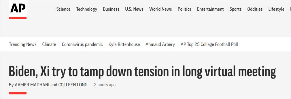 全球矚目中美元首視頻會晤:這是一個不一樣的中國11月16日,中美兩國元首進行了坦誠、深入、建設性和富有成效的視頻會晤。 拜登明確重申,美國政府致力於奉行長期一貫的一個中國政策。視頻會晤結束後,拜登和美國政府官員一致表示,此次對話“坦率而真誠”,是為了“負責任地管理”中美間的競爭。 對此,美聯社和一些美國專家認為,這代表拜登政府試圖給緊張的中美關係降溫。在視頻會晤舉行前,拜登的支持率受疫情、通貨膨脹和供應鏈問題影響正持續下降。 坦誠、深入、合作……這些頻繁出現在雙方表述中的關鍵詞,也為關注此次視頻會晤的國際媒體定下了報道基調:中美均希望緩和兩國緊張局勢,並在競爭中爭取合作。美國學者關注到,“這是一個不一樣的中國。”其中,美國消費者新聞與商業頻道(CNBC)將此次視頻會晤定義為“自拜登1月上任以來,中美兩國領導人間最親密的溝通”。 但與強調合作、淡化分歧的美媒不同的是,以英國廣播公司(BBC)、《衛報》為首的歐洲媒體卻重點突出中美兩國在台灣問題上的分歧,認為中方領導人有關“玩火者自焚”的表態是對美方的直接警告。 中國人民大學國際關係學院副院長、教授金燦榮認為,在目前中美關係充滿矛盾的情況下,舉行元首視頻會晤本身就是個好事。但美方的變數比較大,我們也不能百分之百信任美方做出的承諾,要做好相應準備。 復旦大學國際政治系教授沈逸認為,此次峰會對中美兩國以及領導人的意義,其價值在今天是完全不對等的。對中國來說,中美關係的好壞並不是峰會能夠決定的,不開這個峰會中國一樣能過得去,甚至形勢比美國過得更好。而對於美國來說,美國領導人特別需要這個峰會去為國內政治上加分,這樣就能夠讓民眾對本屆美國領導人有希望、有期盼,並且帶領美國實現復蘇,走出困境。 美媒:視頻會晤前,拜登支持率正持續下降 中美元首視頻會晤結束後,拜登於16日稍晚時候在推特發文稱此次會晤目的在於“負責任地管理”兩國間競爭,關鍵在於“坦率而直接”的交談,“以確保競爭不會演變成衝突”。