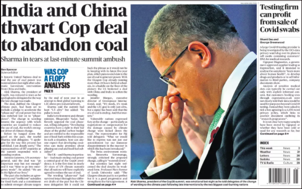 美媒CNBC報道截圖 COP26談判一直持續到13日晚,各國政府就“逐步淘汰煤炭”、“減少溫室氣體排放”和“向貧困世界提供資金”的條款爭論不休。 在會議“最後關頭”,印度環境和氣候部長提出了一個被中國等發展中國家支持的意見,要求將協定中的“逐步淘汰”煤炭改為“逐步減少”。隨後,“歷史性協定”終於通過。 在17日的報道中,CNBC字裏行間指責中國和印度,認為中印是“世界上最大的煤炭消耗國”,最後卻修改淘汰煤炭的措辭。 但對於中國在COP26會議上做出的承諾是否達到預期一事,歐盟氣候專員、歐盟委員會負責歐洲綠色交易的執行副主席提孟思和CNBC看法不同,給出了否定回答。 “不,我不這麽認為。”提孟思表示,即便中國和美國之間存在許多分歧,但最終還是發表了聯合宣言,這就說明氣候問題對中美來說“超越了其他政治議題”。