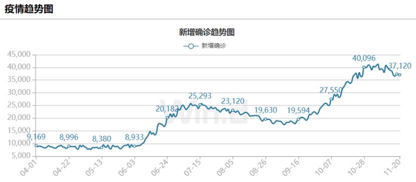 歐洲2021年的冬天,可能會非常危險。 首先是,歐洲經濟的“火車頭”德國。據德國疾控機構的最新數據,11月20日新增確診病例數為63924例,這已是連續4天單日新增超過5萬。疾控機構警告稱,若德國無法減少社交接觸并確保足够多的人接種疫苗,恐將暴發第5波疫情。此前,德國總理默克爾警告稱,第四波疫情正在全速襲擊德國,單日死亡病例令人恐懼。 另外,奧地利的疫情形勢也非常嚴峻。奧地利政府宣佈,自11月22日起,對全國所有居民實施為期10天的“封禁”措施,這是疫情暴發以來,奧地利第四次宣佈全國性“封禁”。俄羅斯、烏克蘭、捷克、匈牙利、丹麥、挪威、波蘭的確診病例數、死亡病例數仍在大幅飈升。 美國的疫情現狀也不容樂觀,當前美國日均新增病例數超過8.5萬,比一周前增加了14%。美國官員預測,今年冬天,美國或將再次面臨“新冠風暴”。韓國21日報告新確診3120例新冠病毒感染,連續第5天單日新增確診病例超過3000例,給即將恢複的全國幼兒園和中小學線下教學帶來挑戰。 歐洲、美國的疫情持續惡化,令市場對原油需求前景的擔憂也有所昇溫,上周五,國際油價一度大跌4%。歐元、英鎊也集體淪陷,歐元/美元單日大跌0.77%,報1.1281,接近去年7月以來低點。 歐洲疫情“爆表”,奧地利“封國” 全球疫情形勢似乎又變得嚴峻。據Worldometer實時統計數據,截至北京時間11月21日6時30分,全球累計確診新冠肺炎病例數超過2.5億例,累計死亡病例516.27萬例。全球單日新增確診病例再度超過51萬例,新增死亡病例8747例。 世衛組織的最新數據顯示,目前,歐洲的新冠死亡人數仍在不斷增長區,上周死亡人數增加5%,其中挪威增67%,斯洛伐克增38%,一周內歐洲新增感染總數占到全球三分之二,其中英國、德國和俄羅斯最多。 目前,疫情擴散最迅速的是歐洲最大的經濟體德國。11月20日,德國疾控機構公佈,當日新增確診感染新冠病例數為63924例,這已是連續第4天單日新增超過5萬,連續多日刷新了疫情爆發以來的單日確診的最高紀錄。 德國的疫情形勢正在進一步惡化,感染的勢頭并沒有中斷,7天內每10萬人發病率在4周內增加了5倍,醫療資源的形勢也十分緊張,很多醫院已經超負荷運轉。 與此同時,德國的累計死亡病例升至98987例,較前一日新增248例。德疾控機構負責人威勒當天警告稱,倘若德國無法普遍減少社交接觸并確保足够多的人接種疫苗,則恐將暴發第5波疫情。 上周,德國總理默克爾公開警告稱,第四波疫情正在全速襲擊德國,單日新增感染病例數超過以往,單日死亡病例令人恐懼。另外,德國衛生部長Jens Spahn表示,德國已經處於全國緊急狀態,當前的形勢不排除一切防疫可能,包括全國封鎖。 另外,俄羅斯的疫情仍在迅速擴散。11月20日,俄羅斯單日新增新冠確診病例數仍處於高位,達到37120例;當日新增死亡1254例,再次刷新了歷史最高記錄。截止目前,俄羅斯累計確診病例數超過929萬例,累計死亡26.2萬例。