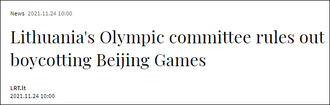 “立陶宛奧委會拒絕抵制北京冬奧會。”11月24日,立陶宛國家廣播電視台(LRT)網站報道了這一消息。