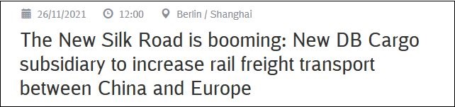 “新絲路正蓬勃發展”,德鐵官網宣佈成立新的子公司,增加中歐之間的鐵路貨運德鐵26日在新聞稿中稱,得益於泛亞貨運,中國貨運客戶如今可以享受到取貨運輸卸貨的一整套服務。而在以前,客戶通常不得不為此委託各種服務運營商。 “這將使鐵路貨運成為更有吸引力的選擇。跨歐亞走廊的運輸速度明顯快於集裝箱船,而成本僅為同類空運服務的十分之一。”