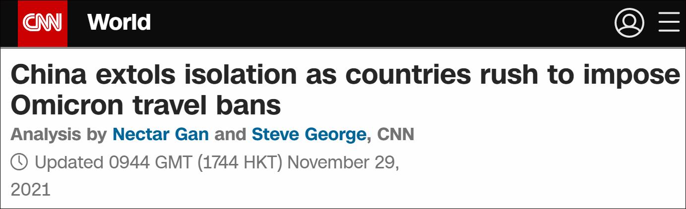對CNN來說,中國的淡定或許太紮眼隨著“奧密克戎”變異株持續蔓延,世界各國進入高度戒備狀態,爭相宣佈“封國封城”。但美國有線電視新聞網(CNN)註意到,在全球人心惶惶之際,中國顯得很淡定。