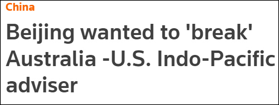 路透社報道截圖 坎貝爾在演講中聲稱,他認為中國是想“完全擊敗澳大利亞”,中國對澳大利亞煤炭、葡萄酒、大麥、木材等商品實施的所謂“制裁”是為了讓澳大利亞“跪下屈服”。但他隨後又改口說,他不認為“事態會走到這一步”,他相信“與澳大利亞改善關係符合中國利益。” 在鼓吹“中國威脅”的同時,坎貝爾卻又對澳大利亞抱有莫名的“信心”。ABC報道稱,澳大利亞葡萄酒、龍蝦等商品的出口已經遭受了很大的損失,但坎貝爾卻揚言“中國遲早會聽從澳大利亞的條款來重新談判”。 坎貝爾給出的理由相當“唯心”,他聲稱中國尊重“實力”,所以澳大利亞硬扛所謂“經濟制裁”的決心會增強它“與中國政府打交道的能力”。 他還告訴澳大利亞智庫,拜登政府“非常清楚”澳大利亞的所有情況,美國對其中一些舉措及其影響“感到擔憂”。 美國倒也確實相當瞭解澳大利亞貿易受挫的情況,還利用這一點賺了不少錢。ABC在11月30日發文披露,今年前9個月澳大利亞對華12項商品出口額減少了126億美元,但美國等“親密盟友”卻借機承接生意,同時期美國同類型商品出口額增加了多達46億美元。 除大肆炒作中國對澳大利亞的“威脅”外,坎貝爾在演講中還談及美國、英國和澳大利亞建立的防務聯盟“AUKUS”。他說美國的幾個盟友對該協議“很感興趣”,曾向美方詢問是否可以在這個框架下合作。 坎貝爾並未透露具體是哪幾個國家有意“合作”,但他借機吹噓起了AUKUS的“開放性”,“得益於英國和澳大利亞的堅持要求,這並不是一個封閉的架構,我們希望在關鍵的軍事創新領域與合作夥伴一起推進。” 他堅稱,AUKUS等美國牽頭的組織將關註在技術、氣候、流行病等領域的合作,這會“體現”美國為亞洲帶來的所謂“價值”。他強調美國不打算離開印太地區,“我們的實力才沒有衰退”。 坎貝爾試圖把加劇地區局勢緊張的責任統統甩給中國。他罔顧美方頻頻進行挑釁的事實,反倒指責中國在核武器、高超聲速武器的發展方面“缺乏溝通”,妄稱中國的軍事發展“會引發不可預見的危機或誤解的風險”。