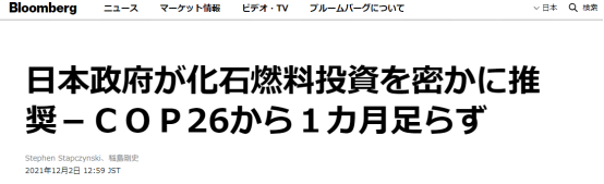 彭博社:第26屆聯合國氣候變化大會還沒過一個月,日本政府秘密鼓勵投資化石燃料 彭博社2日爆料,日本政府相關人士正在暗地里鼓勵石油、發電、天然氣企業放緩脫化石燃料的腳步,甚至有直接鼓勵投資新開發項目的情況。報道稱,這是多名知情日本政府或業界相關人士以匿名為條件放出的消息。據報道,鑒於全球正在推進使用可再生能源,日本政府相關人士擔憂化石燃料的長期供給形勢。