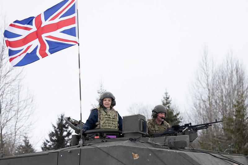 英國外交大臣特拉斯(左)上周訪問駐愛沙尼亞英軍部隊。圖源:推特