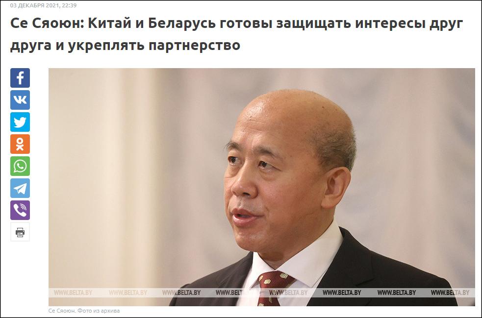 白通社報道截圖 報道指出,這份總統令延續了2015年至2021年白俄當局簽署的發展白中兩國關係的有關命令,目標是在2021年至2025年期間進一步深化白中在廣泛領域的戰略夥伴關係。針對文件提出的重要任務,白俄當局已指示各政府機構及其他與中國合作的實體落實約50項具體措施。 “這些任務得到有效實現,將推動白中兩國關係邁上新的台階。”白通社評價稱。