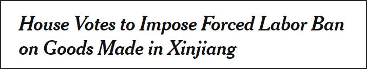 美眾議院又對新疆下黑手據《紐約時報》報道,平日政治極化嚴重的美國聯邦眾議院12月8日以428票贊成、1票反對的結果通過了一份涉疆法案,該法案將禁止從新疆進口一切商品,除非企業能夠提供明確的證據證明商品不是由所謂的“強迫勞動”生產的。
