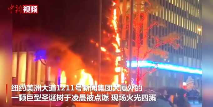據美國中文網報道,當地時間8日凌晨,美國福克斯新聞(Fox News)紐約總部外的聖誕樹被燒毀,一名嫌疑人被捕。