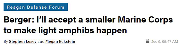 美海軍陸戰隊司令:願犧牲部隊規模換取這種關鍵裝備,以對付中國美國軍事媒體《國防新聞周刊》(Defense News)9日報道稱,美國海軍陸戰隊司令大衛·伯格(David Berger)此前在出席里根國防論壇時表示,為“威懾中國”,他願意以縮減該軍種總兵力為代價,來確保輕型兩棲戰艦(LAW)建造計劃能夠獲得足夠資金。