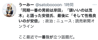 安倍自誇“岸田最帥我性格最好”,日本網民:真是近期最讓人生氣的話題!分享到: