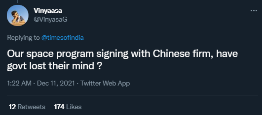 據瞭解,印度政府2020年6月以所謂“有損印度主權、國防安全”等為由,宣佈禁用包括Tik Tok、微信、UC瀏覽器等59款中國手機應用程序。同年9月,印度政府再次宣佈禁用118款中國手機應用程序。 一些印度網民也對此表示不滿,有的揚言“我們的太空項目和中國公司簽約,政府瘋了嗎?”