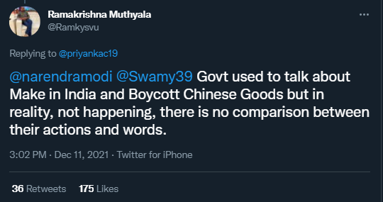 “政府曾經講過要‘印度製造’,聯合抵制中國商品,但是在現實中,什麽都沒有發生,他們說的話和做的事根本不是一回事。”