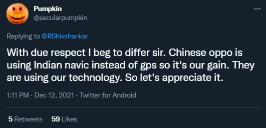 不過,也有印度網民認為,“中國的OPPO用了印度NavIC系統而不是GPS,這是印度贏了呀。”
