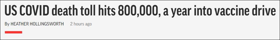 “美國新冠死亡人數超過80萬”,美聯社報道截圖