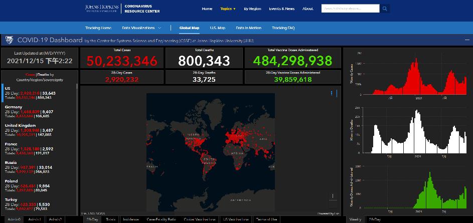 美國死亡病例:800000據美國約翰霍普金斯大學統計數據顯示,截至北京時間2021年12月15日14時22分,美國新冠肺炎累計死亡病例超過80萬,達到800343例,約占全球死亡病例總數的15%。 法新社報道稱,盡管美國在2021年疫苗充足,但是仍然有45萬人因新冠去世,大多數死者都未接種疫苗。美聯社報道稱,美國新冠疫苗完全接種率超過60%,但仍遠低於科學家所說的控制疫情需要的條件。