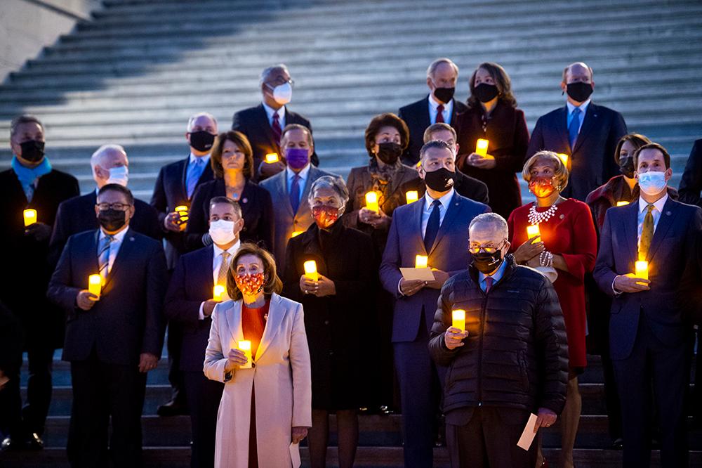 美國約翰霍普金斯大學統計數據截圖 法新社稱,美國長期以來都是全球新冠死亡人數最多的國家,約翰霍普金斯大學統計的80萬死亡病例相當於北達科他或阿拉斯加等州的一州總人口。 為了悼念死者,美國眾議院議長佩洛西、參議院領袖舒默及眾議院共和黨領袖麥卡錫等國會議員於當地時間14日晚,在國會階梯上手持蠟燭,為80萬新冠死者默哀。 舒默在聲明中說:“今天我們將緬懷這80萬名沒挺過這個疫情的親人,這些人都是某個人的父親或祖父、母親或祖母、朋友或街訪鄰居。我們都有認識的人因感染冠病病故。”