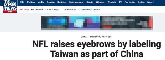 美國橄欖球大聯盟地圖將台灣標記為中國一部分,反華勢力又來挑事了!又來挑事?美國橄欖球大聯盟在一張推廣活動的地圖中,將台灣作為中國的一部分,統一標記為紅色。結果,美國右翼媒體和反華政客又坐不住了,跳出來無端指責。 “美國國家橄欖球聯盟(NFL)將台灣標記為中國的一部分,引起不滿,”作為中國領土不可分割的一部分,在地圖上將台灣和中國大陸統一標記成一種顏色,這個再正常不過的操作,卻被美國福克斯新聞15日以此為題拿來炒作和質疑。