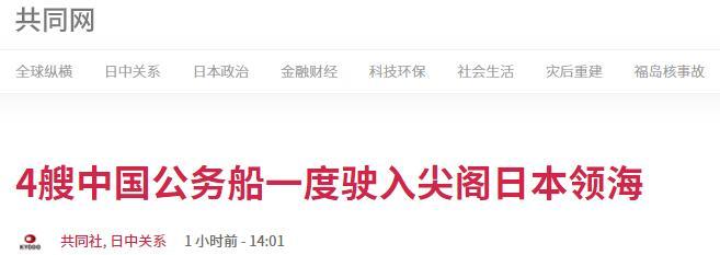 日本共同社 報道截圖 共同社宣稱,這也是繼11月19日後再次有中國公務船駛入釣魚島海域,也是今年第38天。 對於中方公務船在釣魚島附近海域活動一事,中國國防部新聞局此前表示,釣魚島及其附屬島嶼是中國的固有領土,這有著充分的歷史和法理依據。中國公務船在本國領海範圍內開展執法活動,正當合法,無可爭議,也將繼續常態化進行下去。 【編輯:俞丹鳳】