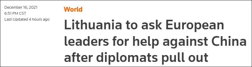 立陶宛又想找歐盟“訴苦”了,還就外交官回國給出了新說法。 據路透社12月16日報道,立陶宛總統顧問當天稱,總統將尋求歐洲領導人的幫助,應對與中國的爭端。