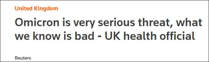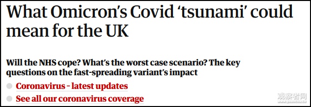衛報:奧密克戎“海嘯”對英國意味著什麽? 英格蘭首席醫療官克里斯·惠蒂12月15日在疫情通報會上表示,英國兩種新冠變異毒株相互疊加,現有德爾塔毒株仍在傳播,奧密克戎更是來勢洶洶。 惠蒂指出,奧密克戎毒株構成了嚴重的威脅,“威脅有多大,有些事我們還不知道,但我們目前已知的所有消息都很糟糕。”