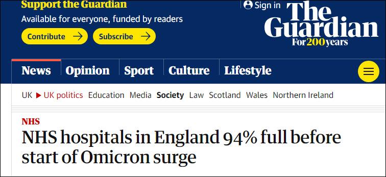 路透社報道截圖 “最重要的是它的傳播速度,它以絕對驚人的速度傳播……我們現在確實有些事要做,最重要的是存在有效疫苗,以及現階段加速推進(疫苗接種)的能力。”惠蒂說。 16日,惠蒂又在英國國會發出警告,指出奧密克戎的傳播速度驚人,這意味著大量容易受感染的人群可能會在短時間內湧入醫院,或導致單日新冠住院人數超過去年冬天的峰值。當時英國每日因新冠住院人數超過4500人。 惠蒂表示,很多人沒有意識到,國民醫療服務體系(NHS)可能會面臨新冠患者的突然湧入,醫療服務會供不應求;而隨著奧密克戎毒株蔓延至英國全境,國家也將面臨整體經濟風險。 不過,根據NHS數據,即便在奧密克戎傳播開之前,英格蘭地區的病床供應已經處於緊張狀態。截至12月12日前的一周內,當地急診醫院共有90702張成人普通及急癥病床,其中85558張(94.3%)被使用;4016 張危重癥床位中,有3246張(80.8%)被使用。