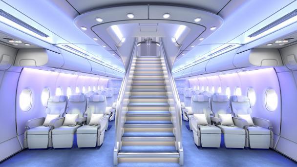 空客A380客機內部 空客A380客機以娛樂設施多、空間寬敞、空氣流通更好等優點吸引眼球,乘客甚至能在一等艙獲得淋浴享受,但是,這一型號客機龐大的身形對機場起降條件要求高,而一些人也質疑客機成本太高。