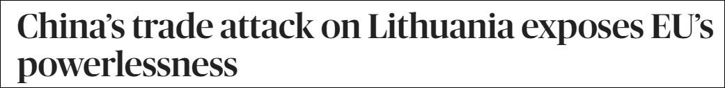報道截圖 文章援引商業組織稱,中國對立陶宛的禁令正影響到一些使用立陶宛供應鏈的其他歐盟國家製成品,比如法國、德國和瑞典。 中國歐盟商會主席伍德克(Jörg Wuttke)說,中國施壓更廣泛歐洲商界的行動是“前所未有的”,使供應鏈形勢變得更加複雜。 而在美媒看來,中國對立陶宛的所謂“貿易攻擊”,暴露了歐盟的“無能為力”。中國迅速加大對立陶宛的“經濟打擊”力度,歐盟卻“沒有什麼好牌可打”。16日,27個歐盟國家領導人會議只挪出很少時間討論這樁事。而這項爭端,可能將暴露歐洲為此采取貿易行動的空間有多小。 Politico稱之為“沒有火力”,因為目前,歐盟的解決方案還是慣常思維:讓貿易部門處理,以及看看世界貿易組織能做些什麼。這兩種辦法,都沒有多少“彈藥”可用。 立陶宛一名高級官員承認,除了癱瘓的世貿組織和“柔軟”的外交之外,歐盟沒什麼選擇。 歐盟貿易專員多姆布羅夫斯基斯(Valdis Dombrovskis)曾口頭支持立陶宛,宣稱要調查中國是否遵循世貿組織規則。立陶宛官員則稱,正與歐盟委員會合作,以將此案提交到世貿組織層面。 "然而,不管他願意提供多少幫助,他的選擇是有限的。”Politico說。比如,歐盟沒有與中國之間簽訂雙邊貿易協議,無法藉此影響局勢。 報道提到了一份針對那些“干預歐盟成員國合法主權選擇”國家的“反脅迫”草案,這份草案最初是為了應對美歐貿易糾紛。但美媒同時指出,歐盟各機構對草案達成一致之前,可能還需要數年的討論。 再看世貿組織,爭端解決程序將耗費數年,尤其該組織“最高法院”還處於癱瘓狀態。其他途徑,同樣需要時間。 對此,“歐洲對外關係委員會”智庫反脅迫政策專家哈肯布羅希(Jonathan Hackenbroich)也說:“目前,很難看出歐盟能有什麼回擊。這是一個非常有說服力的案例,暴露了歐盟工具箱中的短缺,以及出台反脅迫手段的必要性。” 不過,哈肯布羅希同時從立陶宛身上得到了警示:“我們必須團結一致,但‘反脅迫’手段不應該激勵單一歐盟國家推行任何一種單獨的外交政策,然後讓其他國家共同承擔成本。” 稍早前的12月9日,路透社曾獨家報道稱,立陶宛外交部副部長透露,中國已要求跨國公司二選一:與立陶宛企業切斷聯繫,否則將被排除在中國市場之外。 這一消息得到擁有2700餘家會員企業的立陶宛工業家聯盟的證實。該聯盟負責人稱,這是他們第一次看到中國向跨國企業提出類似要求,“以前這隻是可能發生的威脅,現在變成了現實”。 對此,我外交部發言人汪文斌在當天例行記者會上強調,中方一貫按照世貿組織的規則行事。 “立陶宛背信棄義,公然違背中立兩國建交時向中方所作政治承諾,在世界上製造‘一中一台’,嚴重損害中國國家主權和領土完整,在國際上開創惡劣先例,性質極為惡劣。我們堅決捍衛國家主權和領土完整,堅定維護自身核心利益。” 【編輯:紀東】