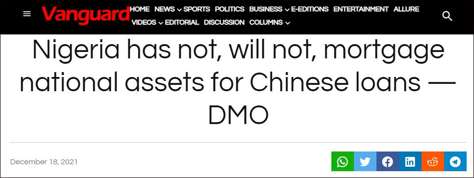 尼日利亞《先鋒報》報道截圖 對此,歐尼亞表示,尼日利亞從來沒有、未來也不會以國有資產為抵押向中國貸款。她呼籲尼日利亞民眾不信謠、不傳謠,根據官方信息來核實網傳消息的真偽。 她告訴尼日利亞通信社,在與外國簽訂貸款合同前,聯邦執行委員會和國民議會等多個政府機構均會採取非常謹慎的步驟以確保這一貸款於國家有益。此外,貸款協議也提供了一些步驟,用於解決可能出現的糾紛。 她說,“首先是雙方各自內部解決,如果解決不了,就去仲裁。換句話說,在這種情況下,中國作為貸方不會在一出現爭議(包括違約)後,就突然搶走資產。” 今年是中國與尼日利亞建交50周年。尼日利亞總統布哈里2月向中方致賀電,表示尼中建交50年來,雙方相互信任、密切協作,取得豐碩合作成果,給兩國和兩國人民帶來巨大利益。尼日利亞主流媒體《領導者報》則發表評論文章稱,中國是尼值得依賴的合作夥伴。 然而,西方媒體炒作的所謂中國“債務陷阱”,最近在尼日利亞大肆傳播。11月,美國國務卿布林肯訪問尼日利亞就老調重彈,污蔑中國讓非洲國家背上“無法償還的巨額債務”。 此番言論立即被尼外長奧尼亞馬“打臉”。奧尼亞馬稱,尼日利亞的債務並不高,完全可以償還,而且他們選擇中企建設基礎設施,是因為中企項目經驗豐富、性價比高,中國也並未借項目施加所謂的“影響力”。 不僅是尼日利亞,肯尼亞、烏干達等非洲國家也對所謂“債務陷阱”做出過有力駁斥。 肯尼亞重要經濟港口蒙巴薩港曾屢次被傳出將交給中國“抵債”,早在2018年底,中國外交部發言人就表示相關說法不屬實。今年3月,肯尼亞政府再次出面澄清,該國沒有將公共資產作為貸款抵押品。前不久,有外媒炒作“中國將接管烏干達恩德培國際機場”,隨後遭到烏總統的駁斥。 【編輯:胡雪石】