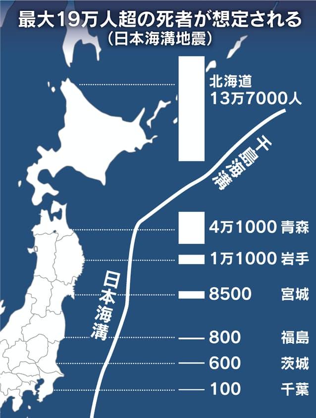 今天(12月21日)上午,日本內閣府專家研討會公佈了最新的地震災害假想。如果以日本海溝和千島海溝為震中發生最大震級為9級的地震,最壞的情況下會造成日本約19.9萬人死亡,22萬棟建築物被完全摧毀。內閣府稱,國家、地方政府和個人需要採取徹底的防災措施,保持“適當的恐懼”。