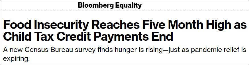 彭博社報道截圖 美國人口普查局12月1日至13日收集的數據顯示,本月有近10%(9.7%)的家庭有時或者經常吃不飽,這達到了五個月以來的最高水平。而在兒童稅收抵免結束前的最後一個月,12月這一數據在有孩子家庭的比例從8月的7.8%變為11%。 美國食品雜貨價格,較去年同期上漲了6.4%,美國食品銀行(food banks)的需求也在增加,在旨在幫助救治營養不良兒童的診所,病人數量同樣在增加。 報道稱,兒童稅收抵免是年收入低於15萬美元的雙親家庭,在納稅申報單上獲得的一筆預付款,每個家中有6歲以下兒童的家庭將獲得每月最多300美元的補助,家中有6至18歲未成年人的家庭每月最多可獲得250美元,符合條件的家庭可以在每個月的15日收到補貼。 美國人口普查局7月至9月間的調查顯示,大多數父母都報告稱,他們用月中的錢來買食物。研究發現,永久支付這筆款項可以顯著減少兒童的貧困問題。 12月15日,是針對擴大兒童稅收抵免計劃最後一筆款項發出的日子。拜登政府正在力推的價值1.9萬億美元“重建美好法案”(Build Back Better Act),將這一支付計劃延長至2022年,然而,西弗吉尼亞州民主黨籍參議員喬·曼欽(Joe Manchin)卻宣佈反對這一法案,該法案地位仍懸而未決。 英國物資短缺狀況,糟糕透頂 而在“脫歐”之後的英國社會,這個冬天也同樣處境艱難,疫情尤為嚴重。 自新冠疫情暴發以來,英國在12月22日單日新增新冠病例首次超過10萬例。據報道,在剛剛過去的24小時內,英國新增新冠病例達106122例,比12月17日的單日新增病例(93045例)、上一次最高點多了大約13000例。 除此之外,自今年夏季以來,新冠疫情引發的全球供應鏈問題又持續困擾著國際貿易網絡,運輸積壓加上勞動力短缺,導致世界各地的各種商品都出現短缺情況。