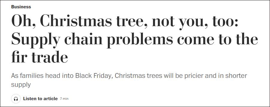 《華盛頓郵報》:“因供應鏈瓶頸,美國家庭恐買不到想要的聖誕樹”