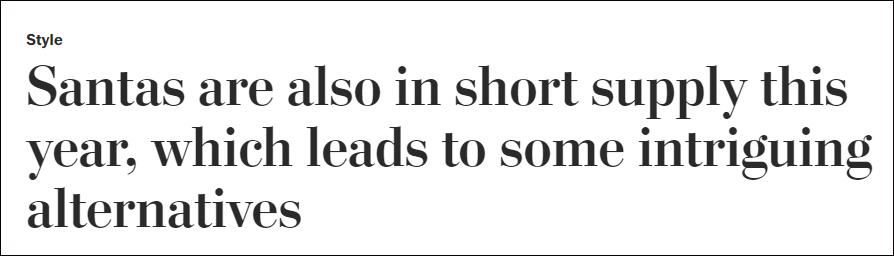 《華盛頓郵報》:“聖誕老人也短缺了” 美國聖誕樹協會表示,受到氣候影響,弗雷澤冷杉、俄勒岡松木等聖誕樹種植和供應量縮小。與此同時,因勞動力短缺、運輸成本高昂,來自中國的人工聖誕樹的供應同樣遇到難題。 同時,全美範圍內的勞動力短缺已經重創了快餐、紡織和長途卡車運輸行業,隨著聖誕節臨近,美國人越來越擔心,他們可能將度過一個沒有聖誕老人的聖誕假期。 “在過去的18個月裏,有數百名聖誕老人和克勞斯夫人(聖誕老人的太太)去世了,這只是一場悲劇。”美國聖誕老人中介機構HireSanta創始人米奇·艾倫(Mitch Allen)表示,盡管死亡並非都歸因於新冠肺炎,但越來越多的扮演者擔心有感染的風險,因此決定退休或者度假。 “有很多需要的物品仍然裝在集裝箱裏的海上……”美國聖誕老人服裝公司的一位女發言人告訴《華盛頓郵報》,該公司原計劃於8月到貨的貨物延誤至今沒有消息,聖誕老人的帽子、胡子等裝飾品包含其中。 但這樣,孩子們真的會買賬嗎? 先別管孩子們是否會買賬了,這些情況還只是一個月前的,而此時的美國,“奧密克戎”已經席卷美國全部50個州。這個即將到來的聖誕節,什麽都缺,但唯獨令人害怕的變種病毒,暫時還無法退散。 【編輯:胡雪石】